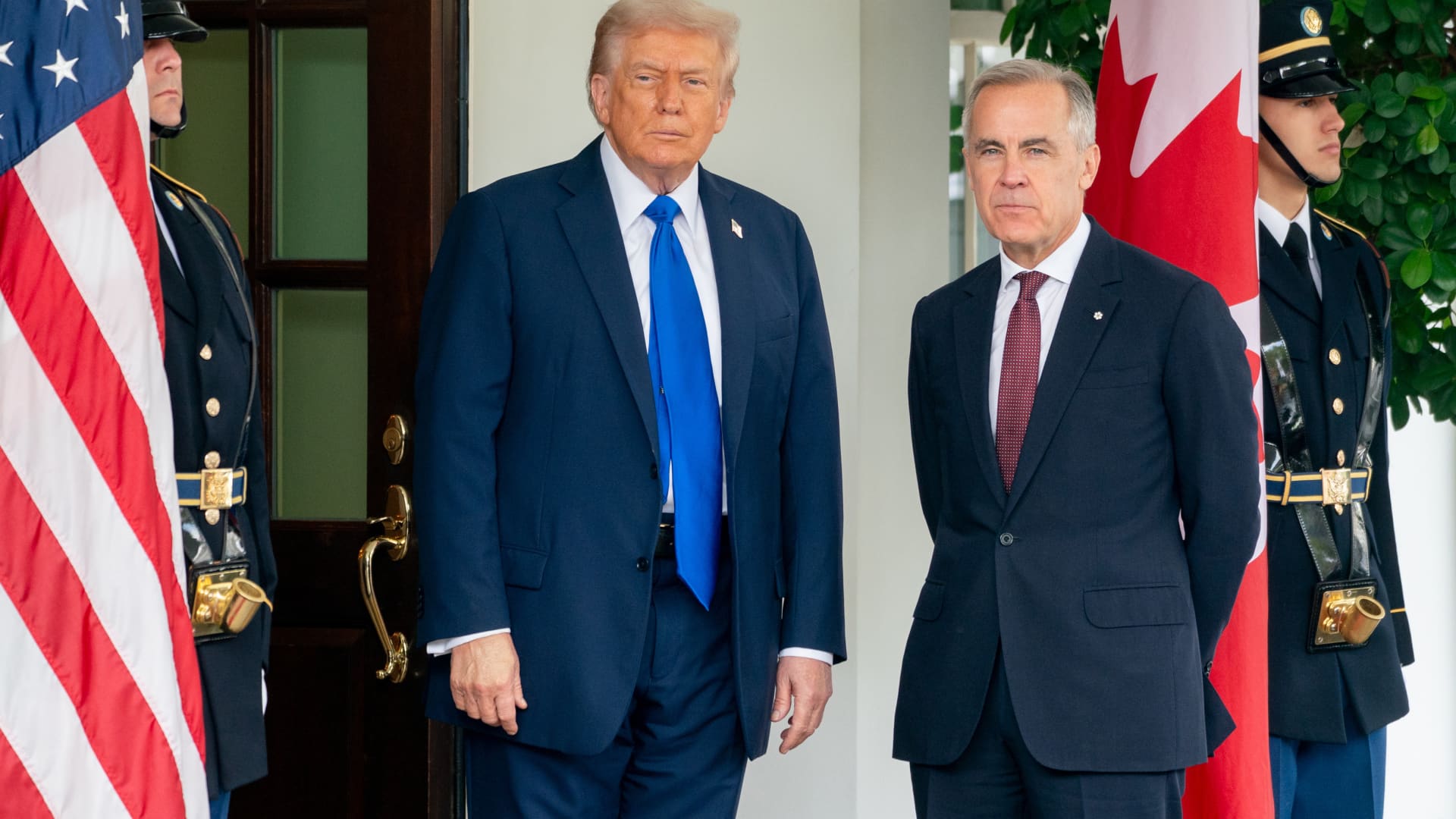 U.S. President Donald Trump (R) meets with Canadian Prime Minister Mark Carney within the Oval Workplace of the White Home on October 07, 2025 in Washington, DC.